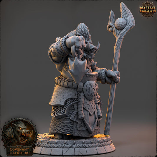 Boar Man Fighter Miniature: Skrenn Blacktusk, D&D Tabletop Gaming